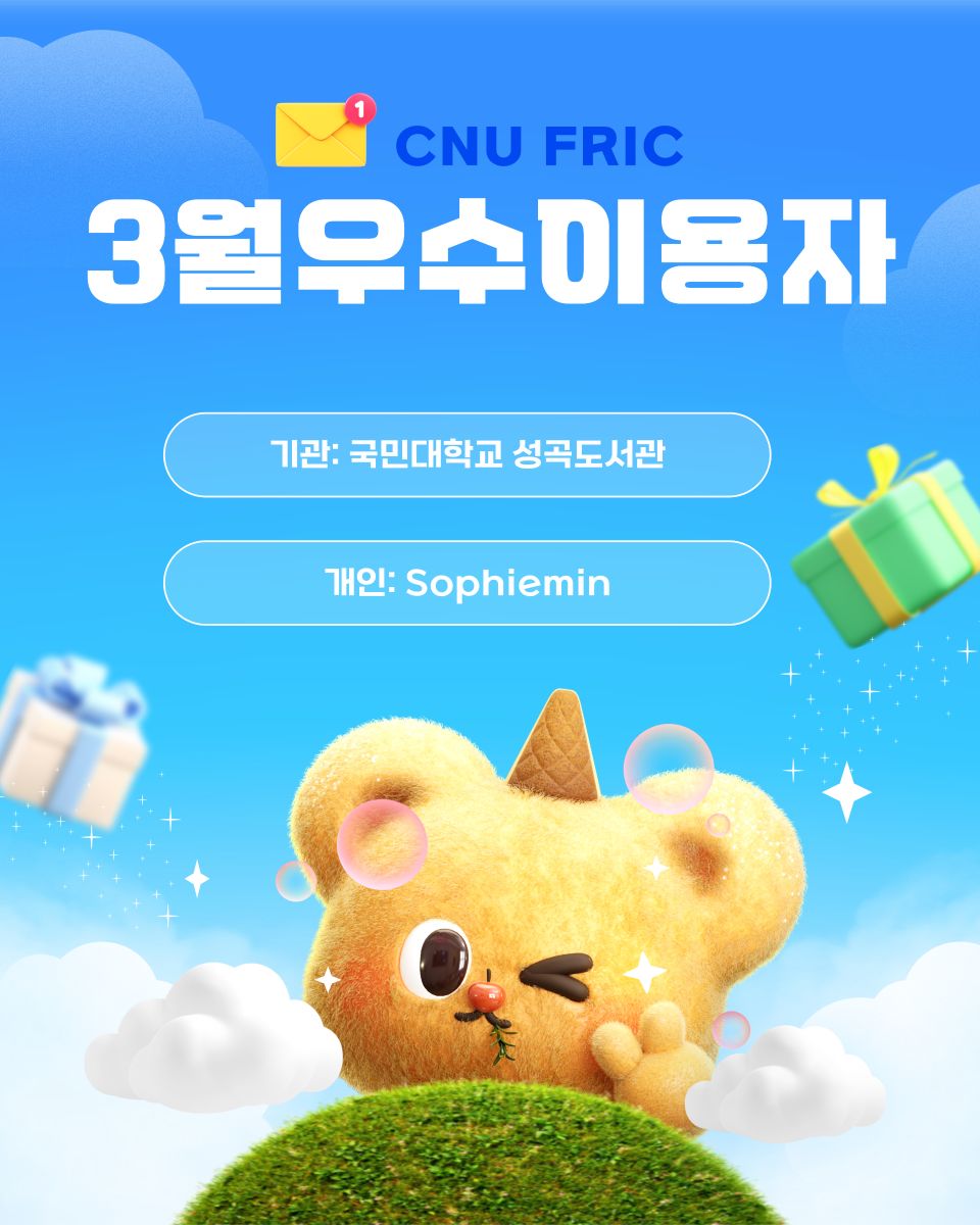 충남대학교 외국학술지지원센터의 3월 우수이용자를 발표합니다!